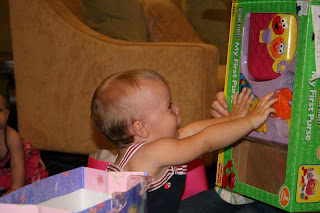 This is Jed and Kacy with the twins- Hunter and Talan (L-R). I hope I got that right. The baby shower was really fun. Livia wasn't real sure of the babies. She sat next to them and acted like she wanted to touch them, but would get really close and back away. They just weren't like her dolls at home.